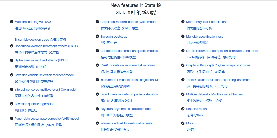 Experience the latest advancements, including many new statistical features such as machine learning via H2O, CATE, and HDFE; more powerful tables and graphs; and improvements to the interface.体验最新的进步,包括许多新的统计功能,例如通过H2O,CATE和HDFE进行机器学习;更强大的表格和图形;并改进界面。