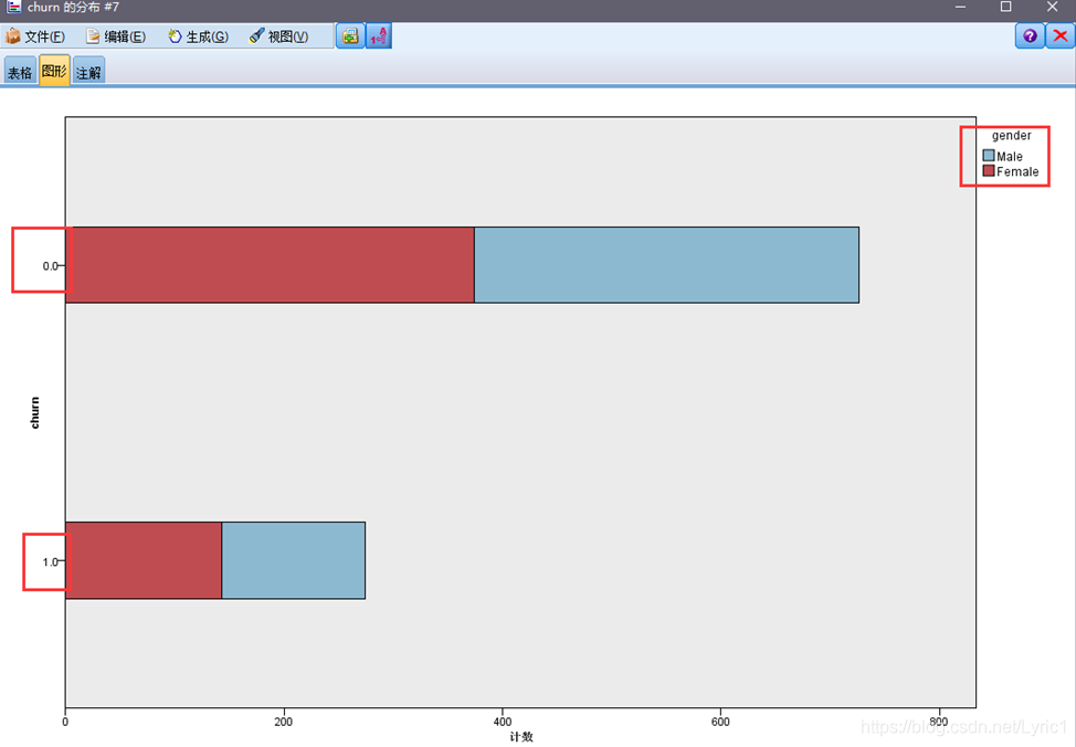 点击运行,可以看到流失与非流失客户中,男女的比例大致都是占一半,无明显区别。