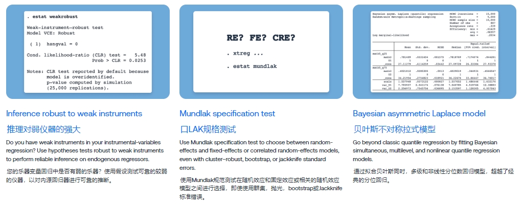 Experience the latest advancements, including many new statistical features such as machine learning via H2O, CATE, and HDFE; more powerful tables and graphs; and improvements to the interface.体验最新的进步,包括许多新的统计功能,例如通过H2O,CATE和HDFE进行机器学习;更强大的表格和图形;并改进界面。